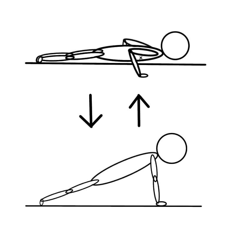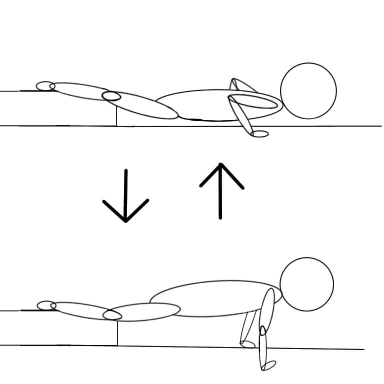 下半身(太ももの付け根まで)が全てついた状態での胸上部の腕立て伏せ